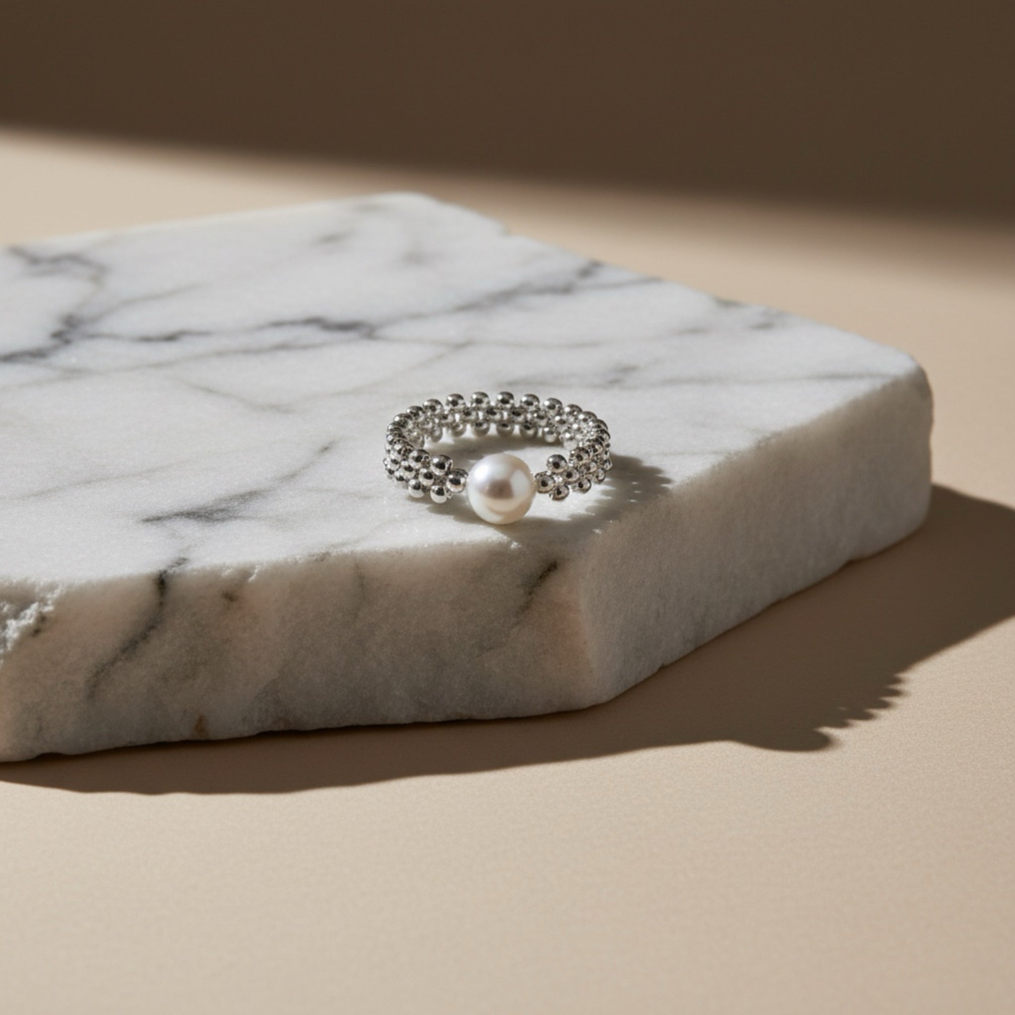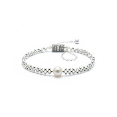 • Delicate Pearl Weave Bracelet – Silver Tone